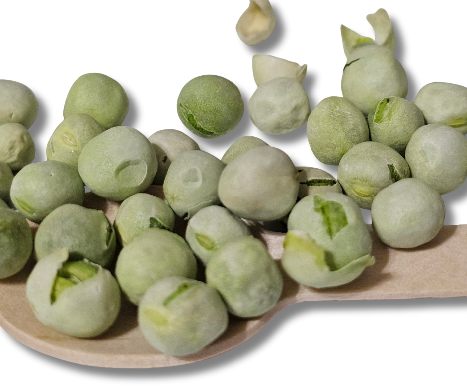We only use human food grade freeze dried peas, that contain no additives like glyphosate or gluten.